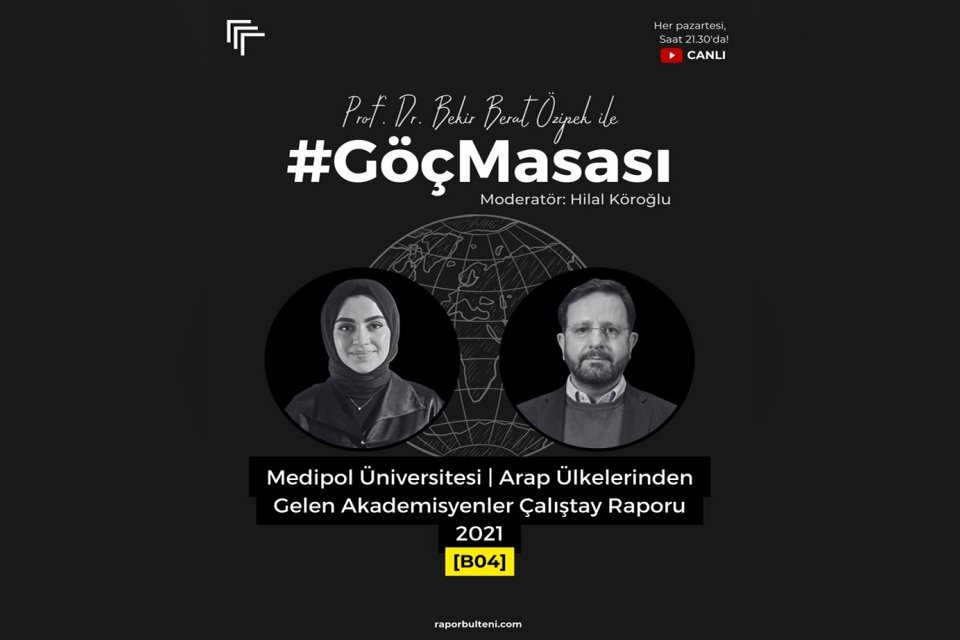 Göç Masası programında, Prof. Dr. Bekir Berat Özipek ve Araştırmacı Hilal Köroğlu Medipol Üniversitesi tarafından 2021 yılında hazırlanan “Arap Ülkelerinden Gelen Akademisyenler Çalıştay Raporu”nu değerlendirdiler. Yapılan tespitler şöyle: